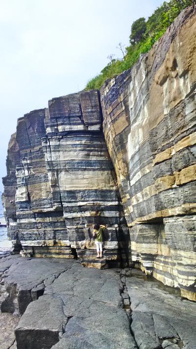 海底に降り積もった砂や泥が長い年月をかけて岩になるんだけど、それらがマグマの力で違う石にに生まれ変わった変成岩。割るとガラスの様に角ばって割れるらしい。この説明より直角な部分の謎が解けました。- 旅行時期