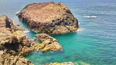 3連休という事もあって駐車場近くは大渋滞。テレビでも紹介されたらしく想像以上の観光客で賑わっていました。鳥居の先の先端部崖っぷちはスリルがありました。崖の上から恐る恐る覗いた海の色がとても透明なブルーで感動の声があちこちで上がっていました。