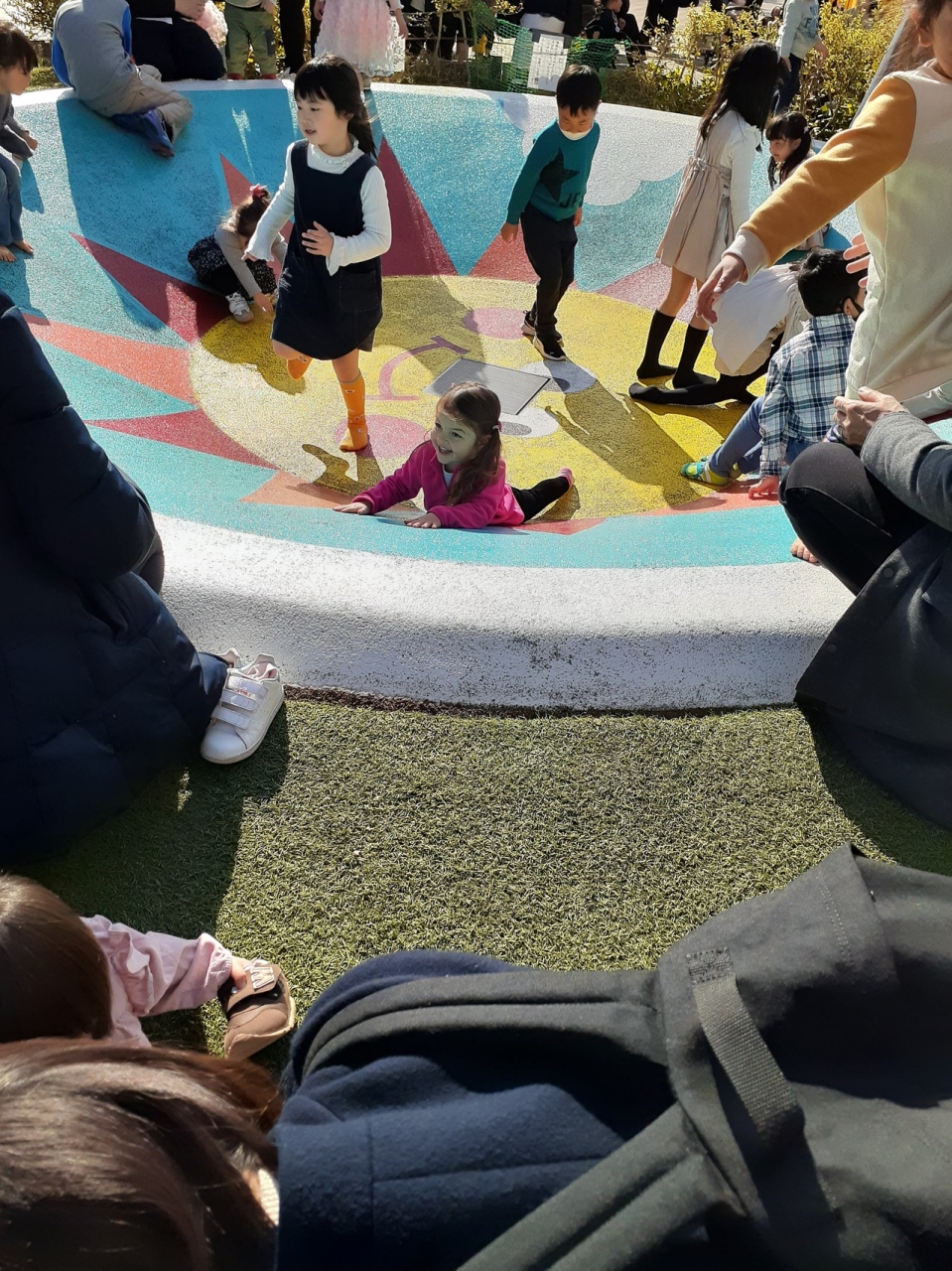 祝日なので、小さい子供を連れた家族がたくさんいました。子供たちが走り回っていても、緑が多いからか、気分的にのんびりした感じがしました。滑り台や中に出たり入ったりして遊ぶ穴になっているような所など危険なくかつ無料の遊び場としては、とてもいいと思いました。