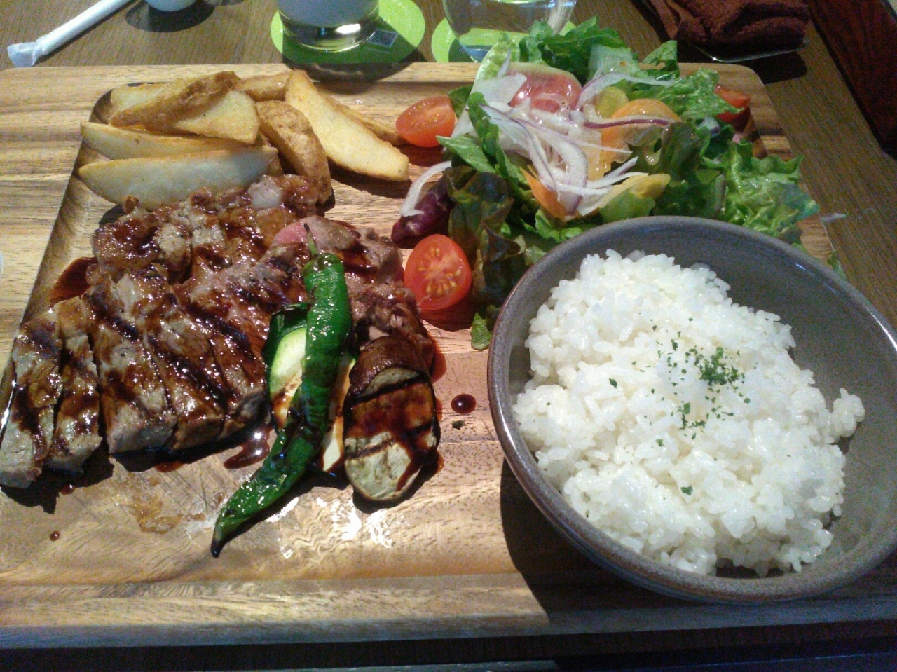 USビーフのステーキランチプレートを頂きました。焼き加減はミディアムレアです。食べごたえがあり、最後まで美味しくいただきました。サラダはカラフルでおしゃれな盛り付け。ライスかフォカッチャ付きです。ライスはお代わりできました(利用時は追加料金なし)。