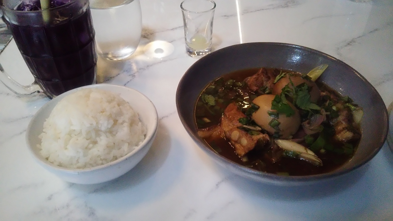 ハーブの効いたスープを頂きました。頂く前は薬草のにおいが強いかと思っていましたが、レモングラスの香りが奥深く、じっくりと味わいました。スープに入っていた豚肉や卵も、しみじみ美味しいと思いました。