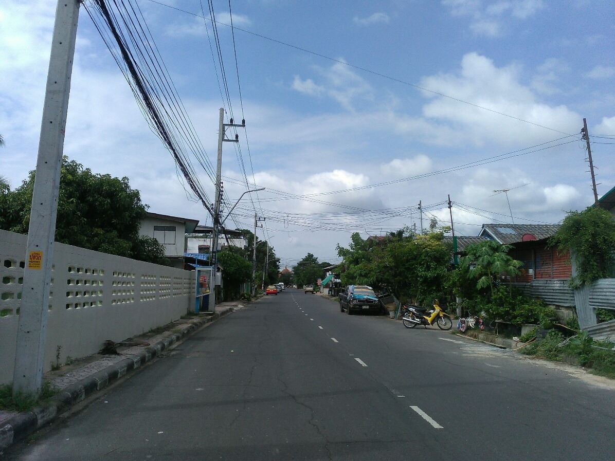 空港からの直線距離は近いですが、歩いていくのには距離があります。テスコがある大通りから路地に入って徒歩10分弱。静かな環境の中にあります。街の中心部やバスターミナルへはソンテウが便利です。周辺は住宅街で飲食店や商店はほとんどありません。