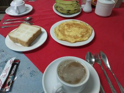 宿泊したのはベッドとテーブルだけがあるシングルルームでした。wifi無料、エアコン付き。豆入りごはんとトマトなど、簡単な朝食も含んで宿泊費は約6$でした。コスパはよいと思います。