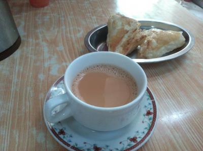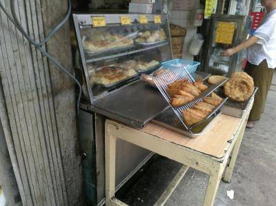 店先はたくさんのパイが並んでいます。そばにいた店員さんに中身を確認して注文しました。薄暗い店内が心地よいです。ココナッツが入ったパイ2つとミャンマーティーを頂きました。合わせて1000チャット(80円ほど)。元気がいい若者の店員さんとどっしり構えたお会計のおじいさんの対比が趣深かったです。- 旅行時期