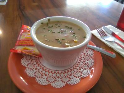 聞いていた通り、ボリュームがありますがとてもお腹がすいていたのでちょうどよかったです。先に出てきたスープが具だくさんでお肉や野菜のうまみが出ていてとてもおいしかったです。メインのサンドは野菜たっぷりでヘルシーです。付け合わせにベリー系のジャムも付いていました。