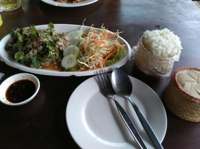 外観から高価格のお店かと思われましたが、低価格から高価格まで多様な料理を食べられます。豚肉炒めと生野菜、もち米を注文。素朴な味で美味しかったです。