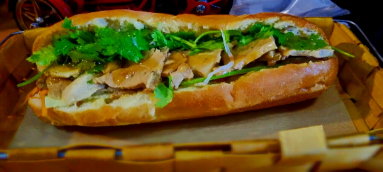バインミースペシャルを注文。なます・パテ・チャーシュー・パクチーが入った具沢山サンドウィッチでした。