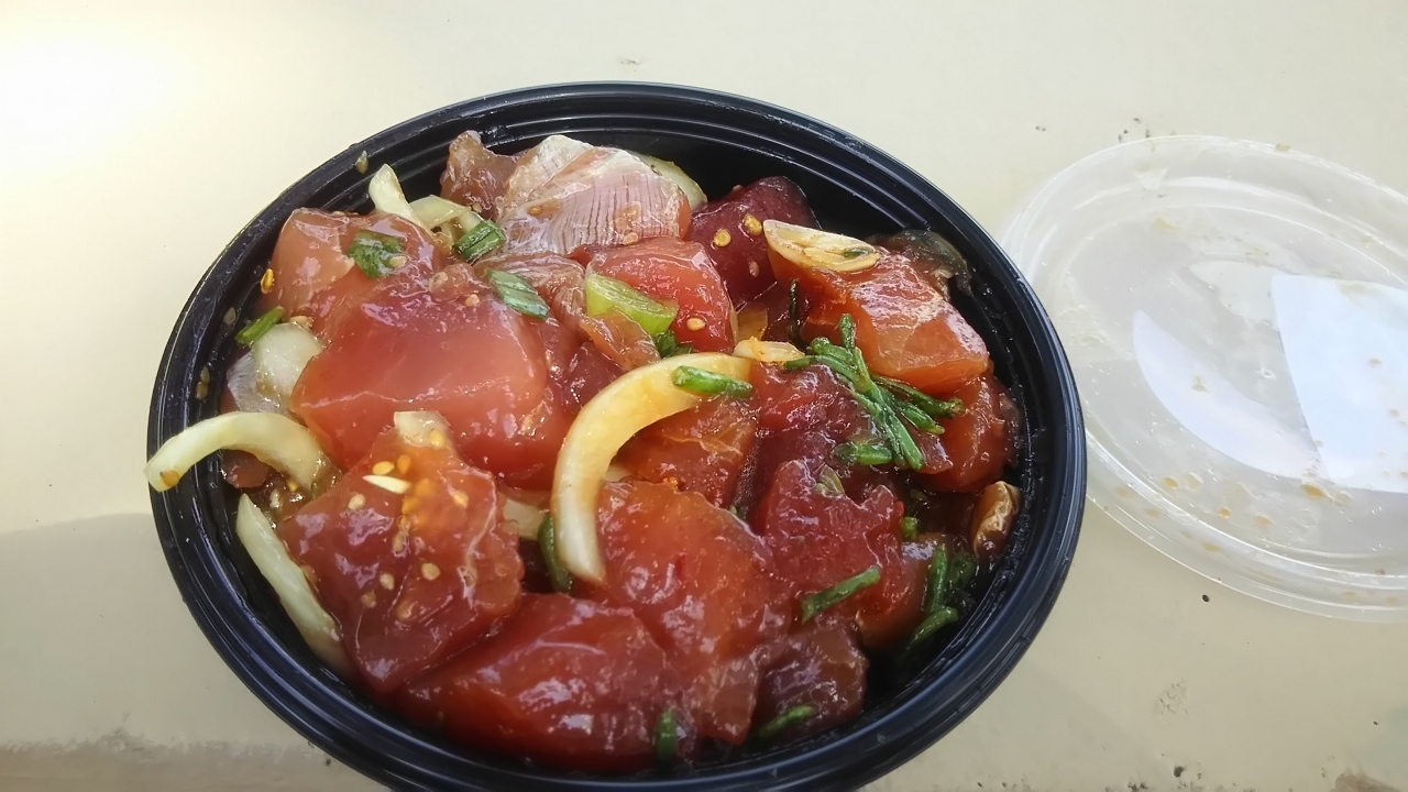 ポケは醤油・わさび・ホット(辛い)・ニンニクなどいろいろな味付けがありました。