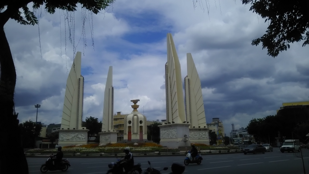 ドンムアン空港からのA4バスでこちらを通ります。バスの車掌さんにもDemocracy monumentで通じたのでよかったです。周辺には地元の方も多く利用する飲食店があり便利でした。