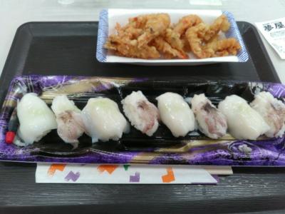 迷った挙句、頂いたのはヤリイカのお寿司と甘エビの天ぷら。どちらも50円引きで合わせて700円弱でした。言うまでもなく、とてもおいしかったです。飾り気のない北陸の味。