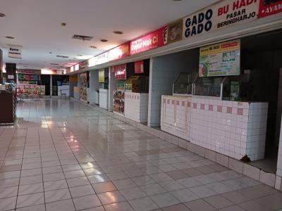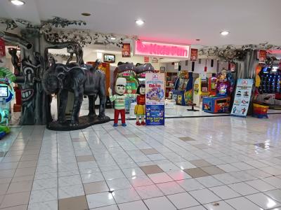 入口はテイクアウトの飲食店があり、混雑しています。それ以外は静かでした。上の階のゲームセンターはゲームの音だけが響き、同じフロアの飲食店は照明こそついているものの、休業しているようでした。