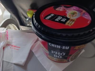 機内販売で食事を頂こうとしましたが、あまり見られておらず、大きくアピールして何回目かに購入できました(対応中は丁寧でした)。価格によるのかクレジットカードは使えず、現金ではドンかUSD、日本路線だったので円も使えました。録音された案内では日本語がきちんと流れるので安心です。
