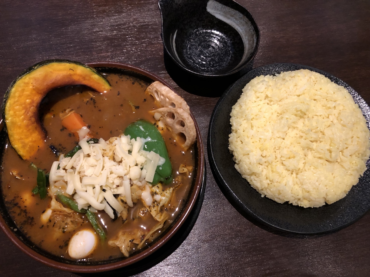 以前豊岡にあったスープカレー屋さんが、大きな店舗で再開。店内はかなり広いが、昼時になるとたくさんの人でにぎわいます。スープカレーといえばチキンが好きなので注文。ライスは大盛りまでは無料だが、大盛りの量がとんでもない量。トッピングにチーズとゆで卵を追加したのですが、余すぐらいな量と美味しさにとても満足できました。