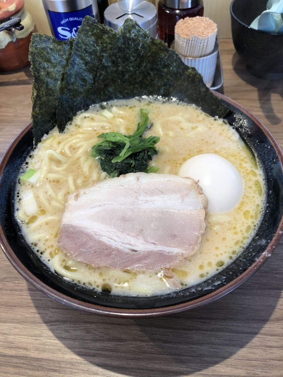 横浜家系らーめん織田家いってきました。らーめん普通盛り、醤油とんこつ、味玉のせを注文しました。麺は細麺と太麺で注文できるみたいです。まず普通盛りのどんぶりが小さい。量じゃないのですが。スープはとんこつなのですが、クリーミーです。横浜家系とはいえないかも。ドロドロの骨汁を吸いたいわけではない。これが好きな人もいらっしゃるかも。家系を求めるなら期待外れになってしまうと思います。接客はすごく好印象。