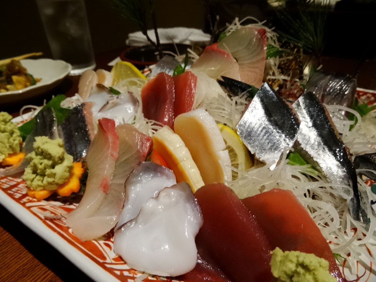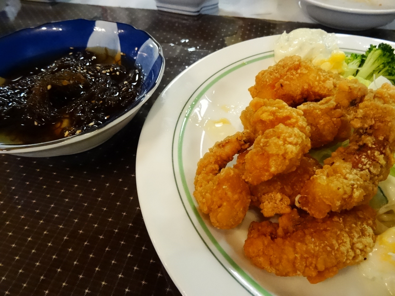 蛸のから揚げや刺身など、地元の魚を使った料理を頼みました。