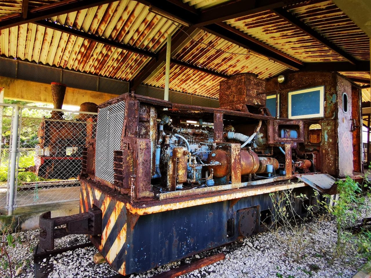南大東島にはサトウキビを運搬するためのシュガートレインが、島一周環状線と6本の支線が張り巡らされていたそうで、当時の機関車が展示されています。