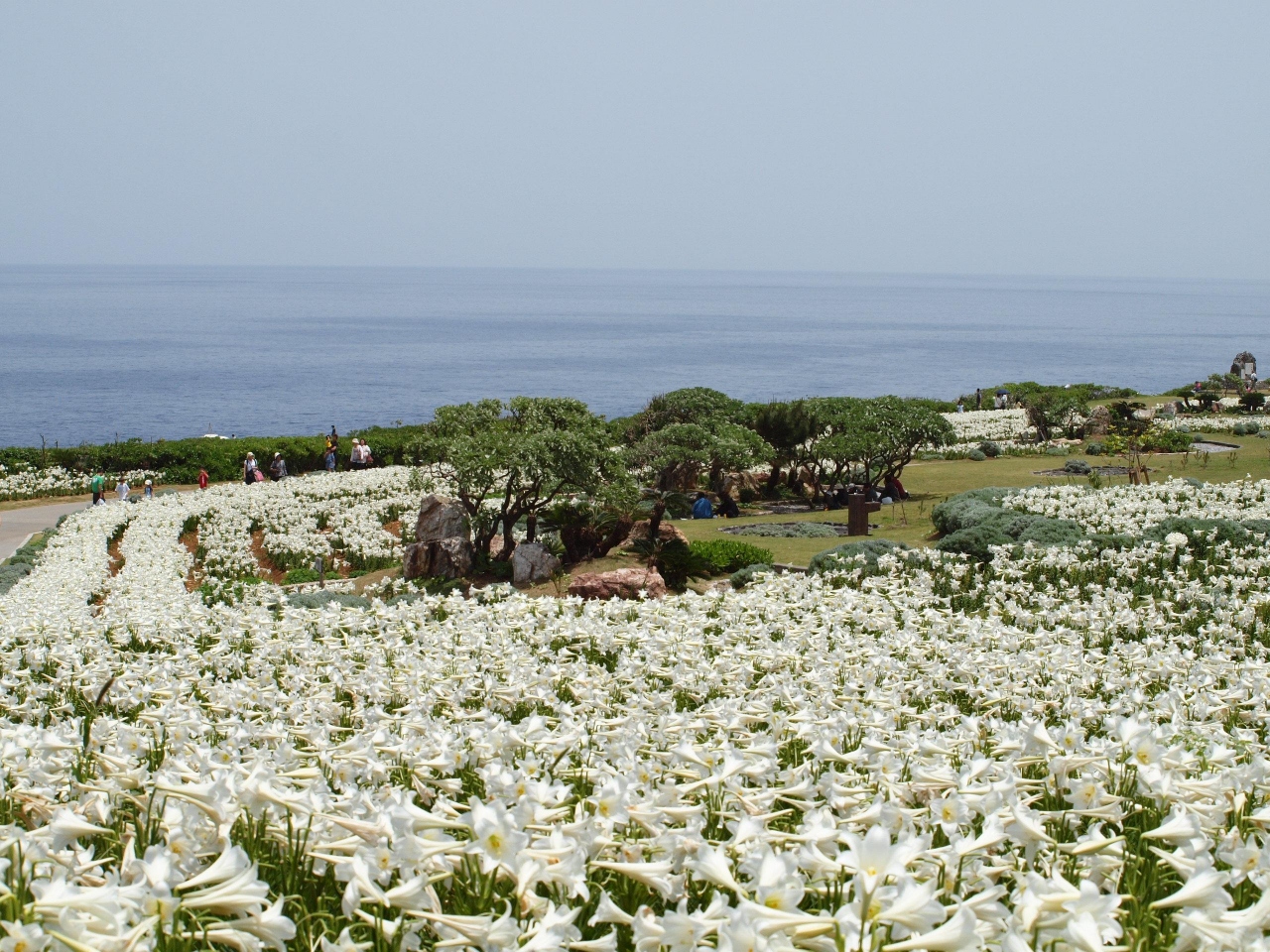 ゴールデンウィーク期間中に行ったのですが、見事な一面のユリの花に圧倒されました。海の青さとユリの白さが見事で、この時期に沖縄本島へ行かれるなら、ぜひオススメです。