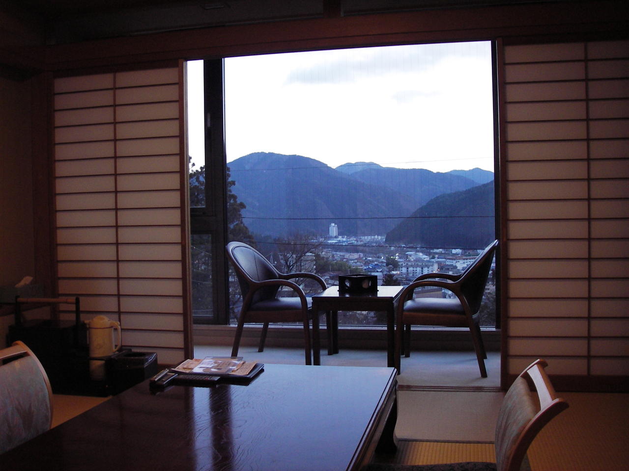 下呂温泉街の高台にあり、窓の大きい部屋からは町並みが一望できます。温泉はかけ流しで、滑らかなお湯がとても肌に良さそうでした。