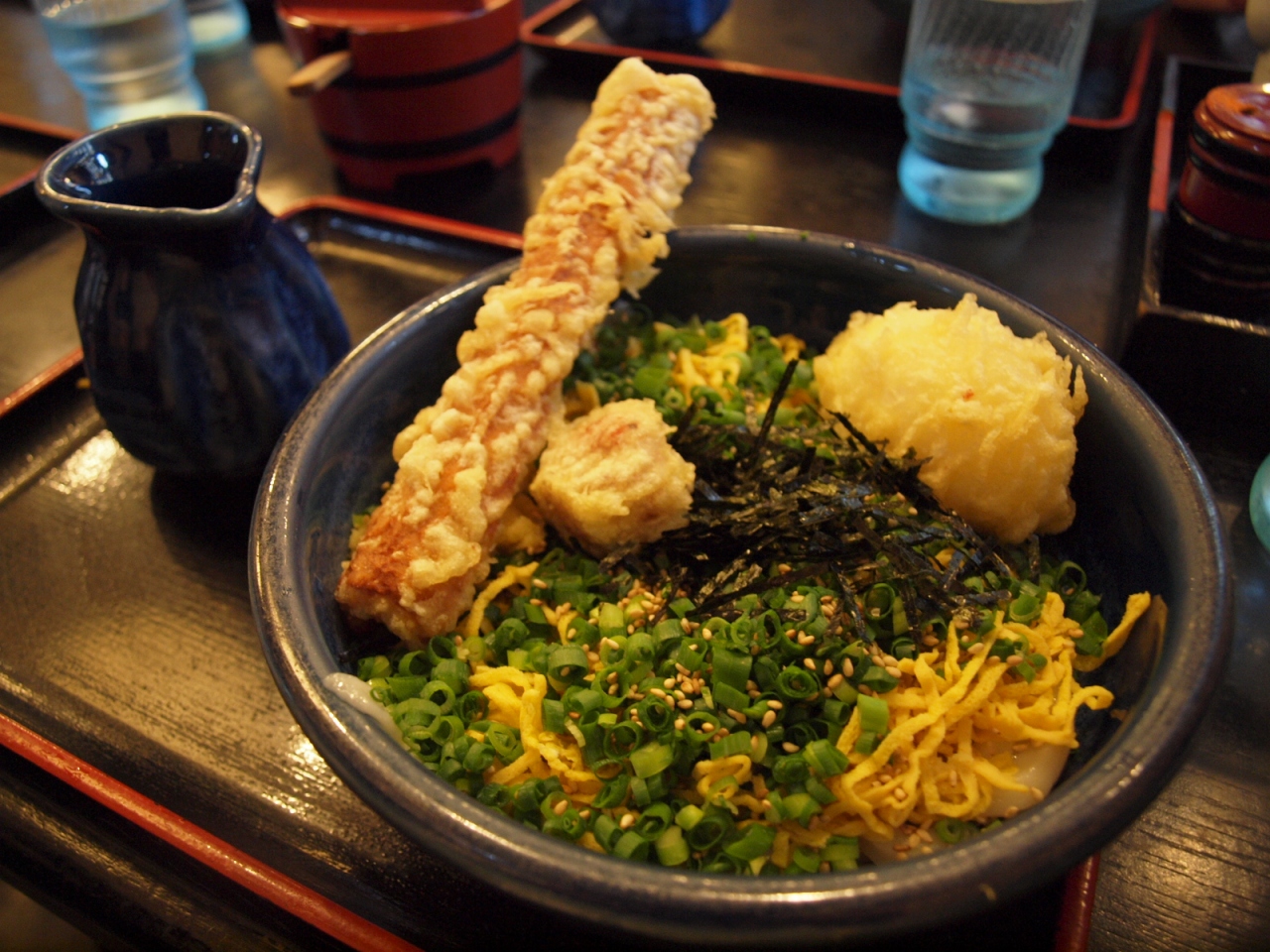 手打ちの麺に、冷たいor暖かいお汁とトッピングを乗せて食べるシンプルなタイプ。