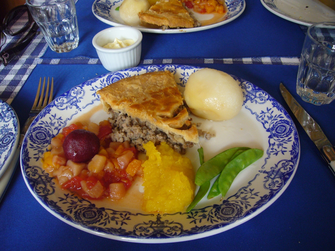 ミートパイに野菜(これも煮込んであったり)がすごく素朴な感じでおいしかった。