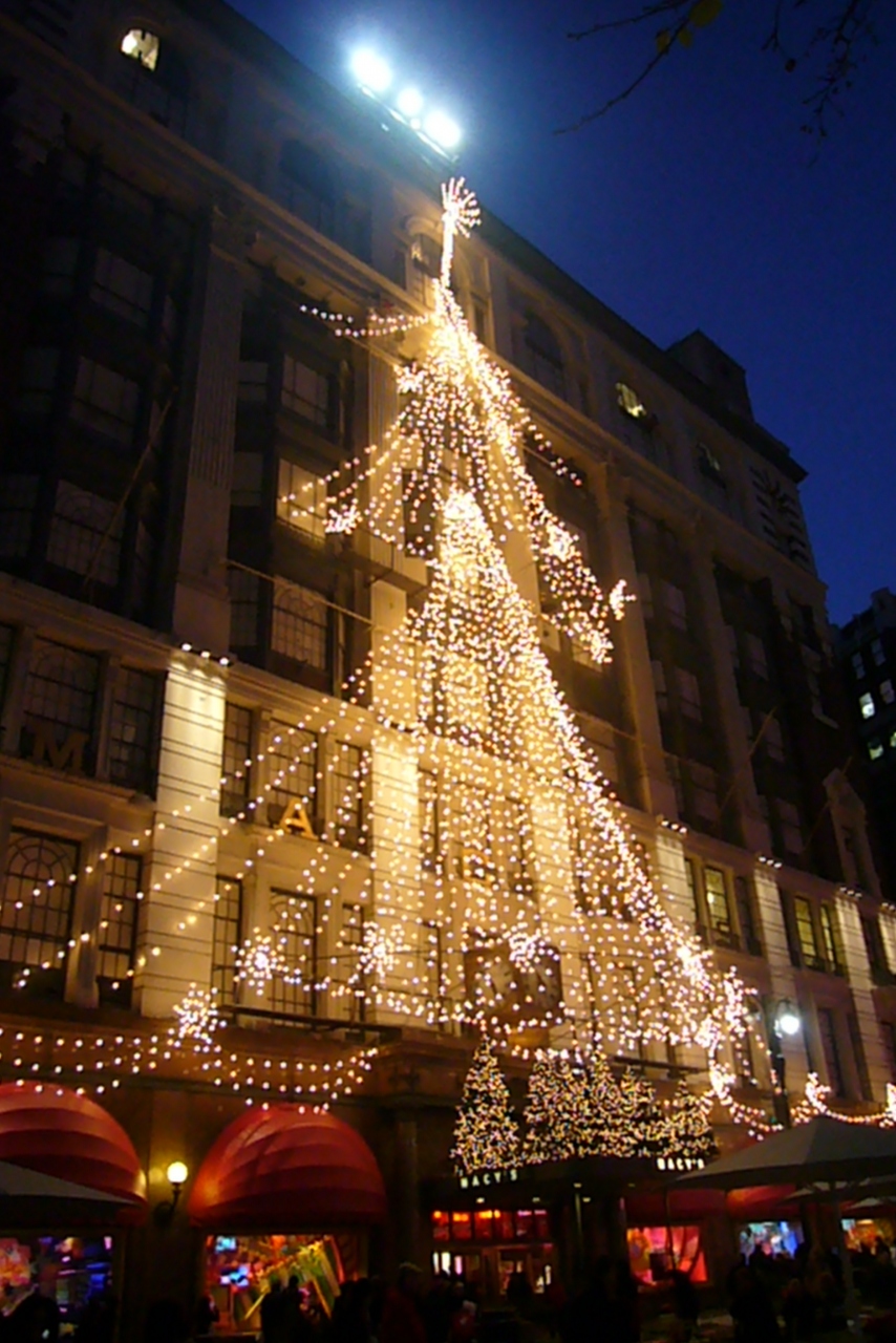 ツリーそのものだけでなく、周りのお店やデコレーションも合わさって