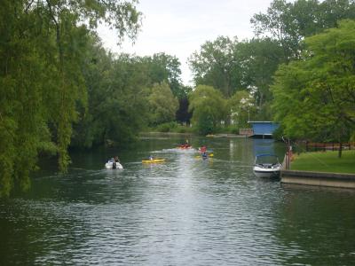 パークまで近く、行く道にはファーストフード店やレストランなど