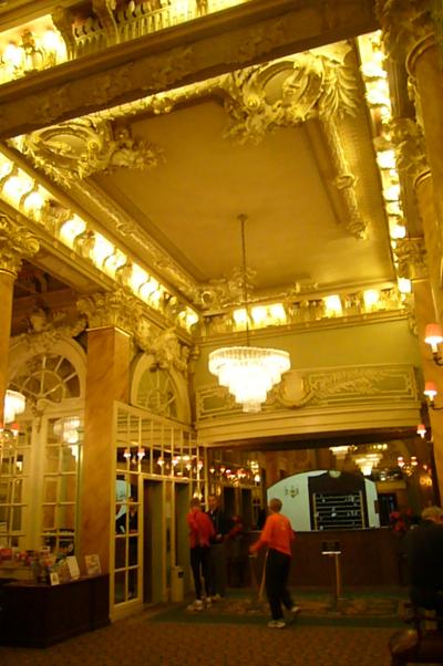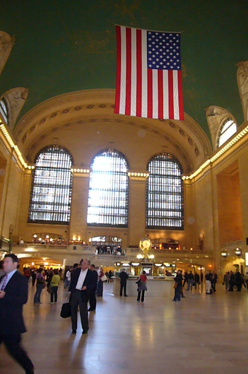 駅のロビーの中央には大きな星条旗がかかっていて、