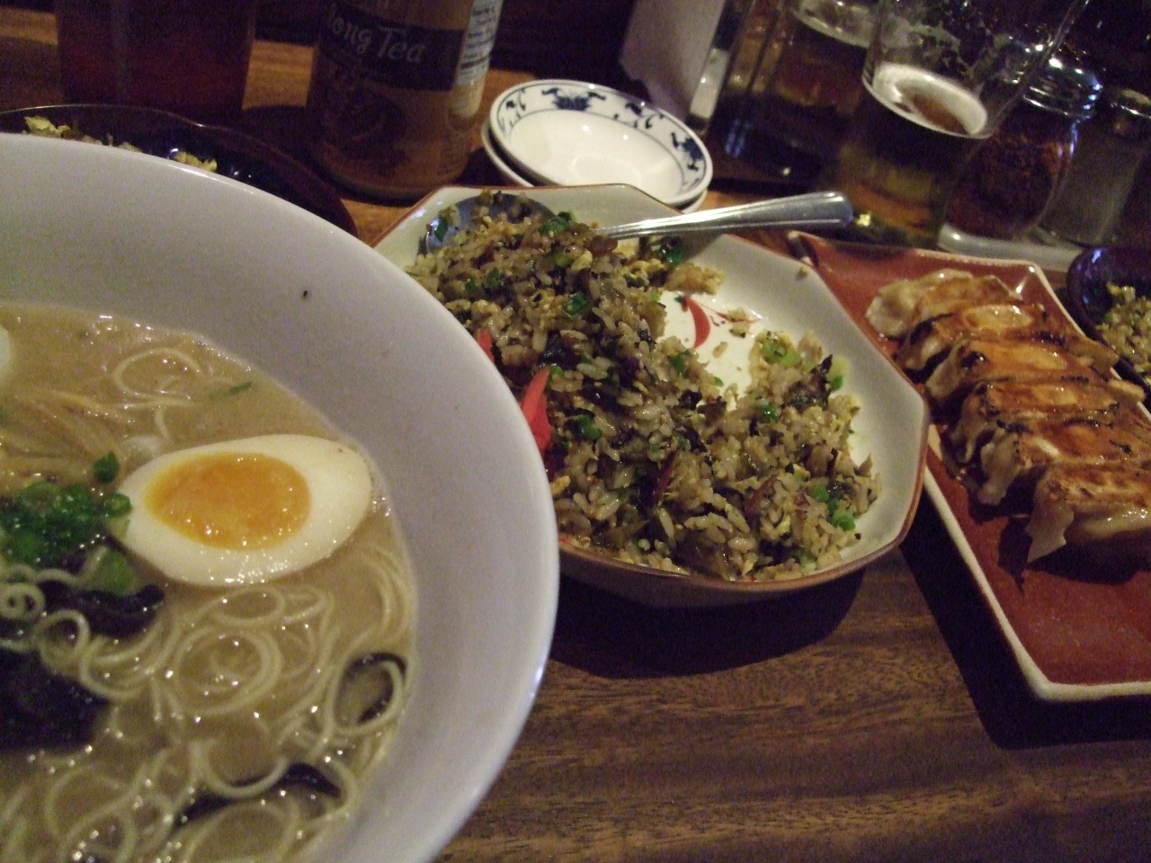 とんこつラーメンは麺も細麺ストレートで、アメリカで食べるラーメンで一番好き。
