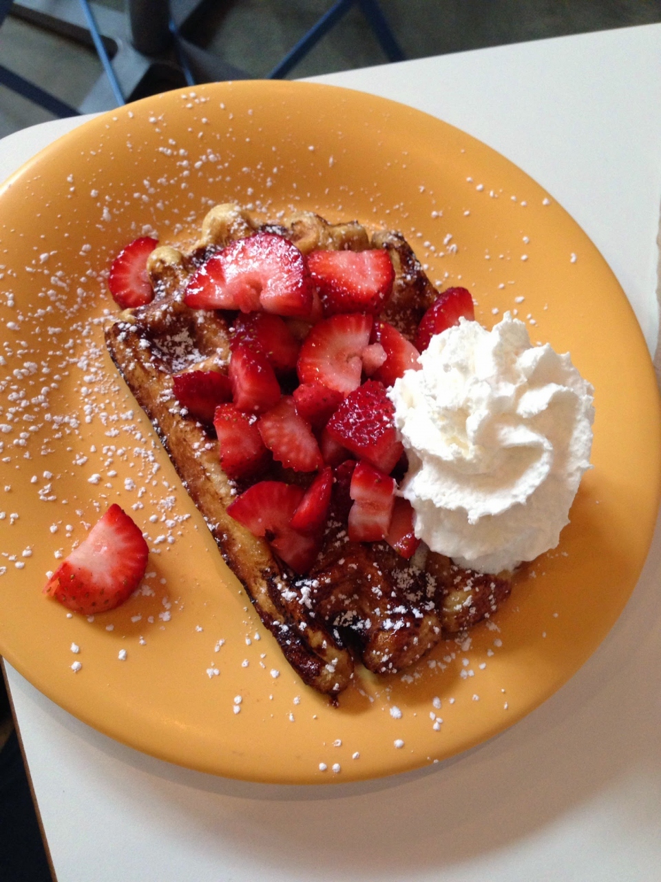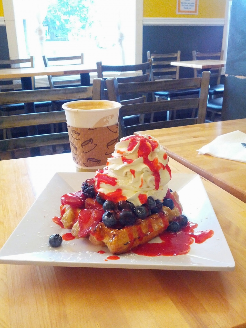 季節限定のBerry Blissという甘いワッフルを注文しました。パールシュガーの入った本格的なリエージュ風ワッフルで、注文を受けてから焼くので焼き立てが食べられるところが嬉しいです。本格的なのでわざわざ行く価値があります。