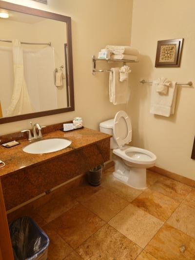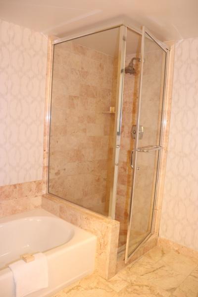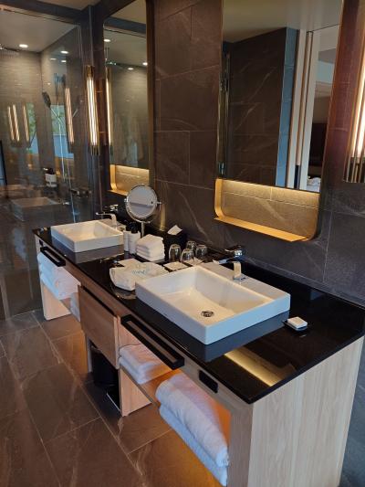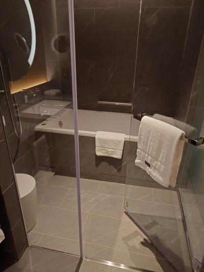バスルームはシャワーブースとバスタブが離れていて床が濡れてしまうのが難点でした。- 旅行時期