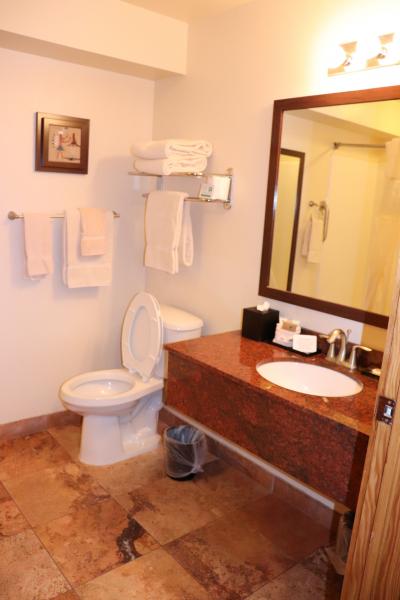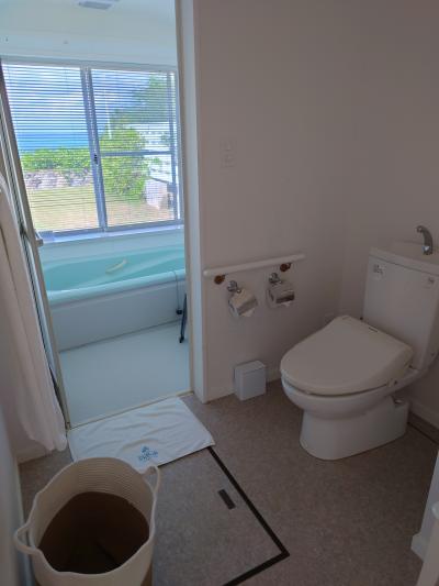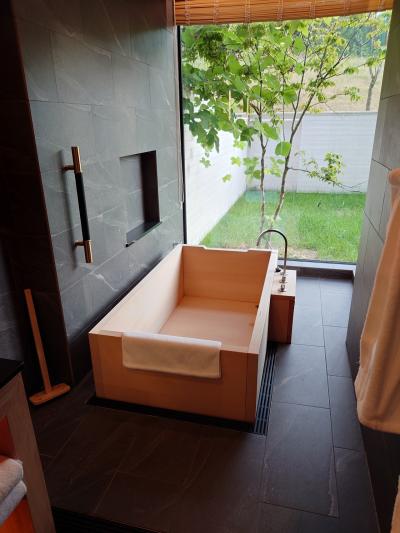 バスルームは狭いですが温泉があるのでそちらへいけば問題ないかと。
