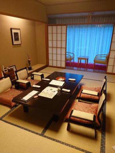 お食事は夕食は部屋食、朝は大広間で食べました。