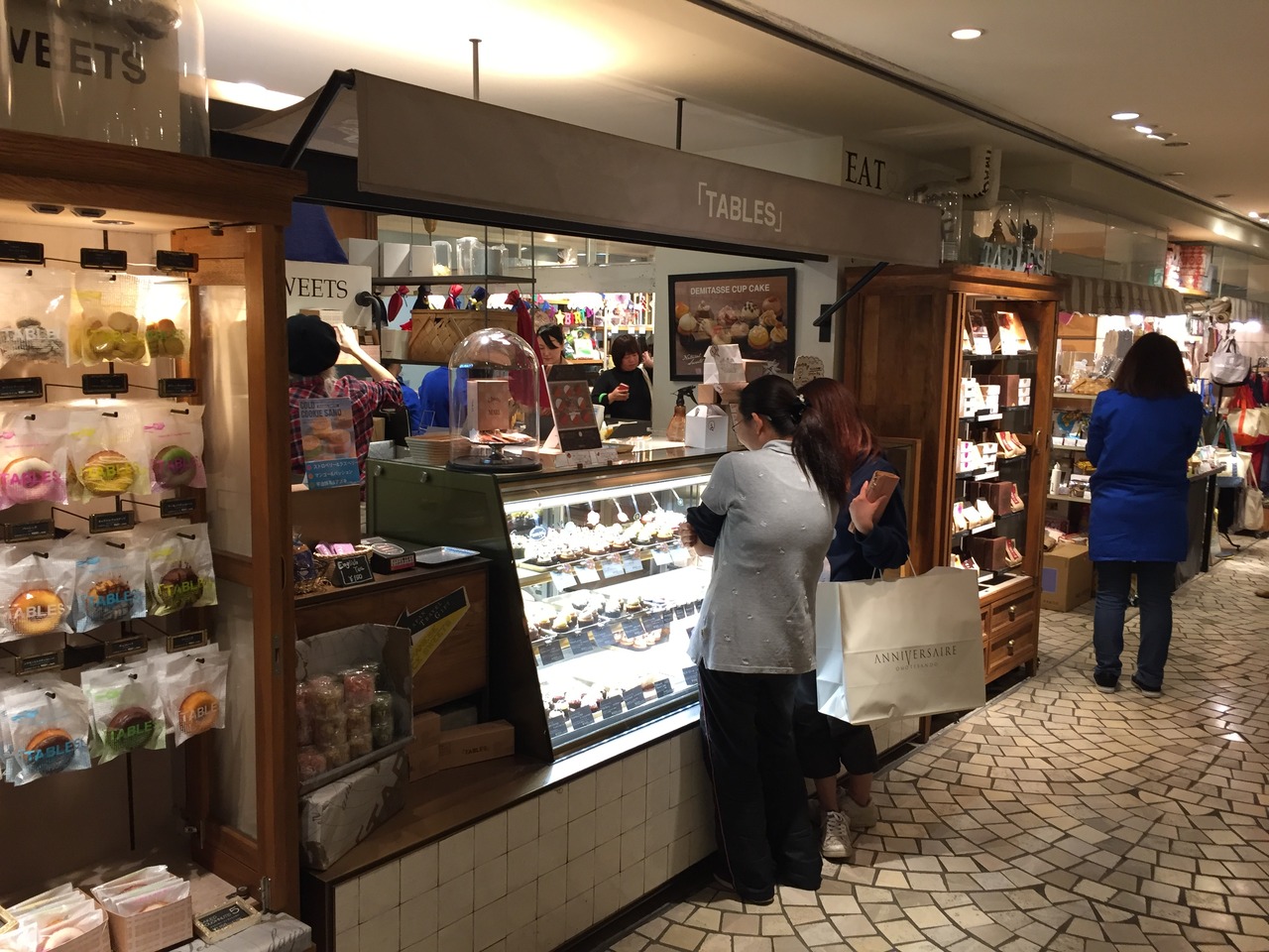 表参道駅のフードコートにあります。通りが狭く、すぐに通り過ぎてしまうのが難点ですが、ケーキもマカロンも小洒落ていて美味しいです。特にケーキは飾り付けにハートや雪の形のホワイトチョコがあしらわれ手いてきれいでした。