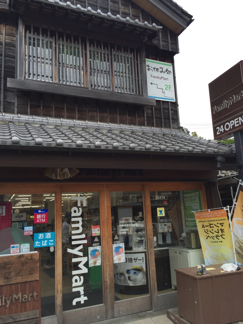 伊勢の景観条例のせいなのか、すっかり街並みに溶け込んでおり、外からでは全くファミリーマートかどうか分かりません。とは言え、中はやはりファミリーマートで、取り扱っているものも一般的なコンビニの商品プラス伊勢土産といった印象でした。