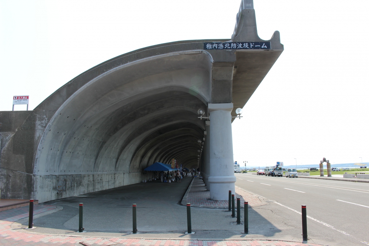 稚内駅から徒歩10分弱で、全日空ホテルの先に数百メートルに渡るコンクリートの防波堤があります。冬の激しい波が市内に降りかかるのを防ぐための重要な施設ですが、夏場は露店が出たり、ライブイベントがあったりと娯楽に使われているようでした。