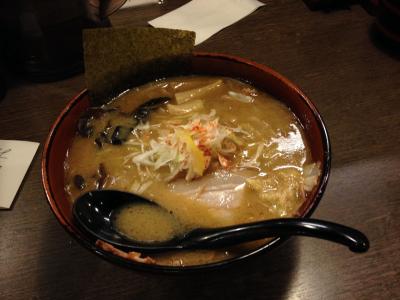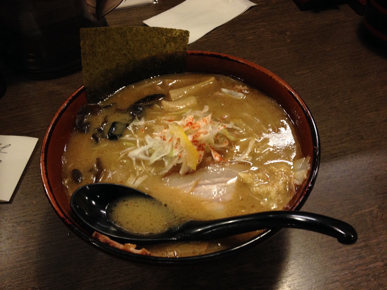 一口スープを飲むと、焦がし味噌のような香ばしい風味に舌の感覚を奪われます。縮れ麺との相性も抜群で、美味しかったです。ただ、チャーシューは少し脂っぽ過ぎた気もしました。もやしのナムルが食べ放題でしたが、味付けが曖昧で食べごたえはありませんでした。