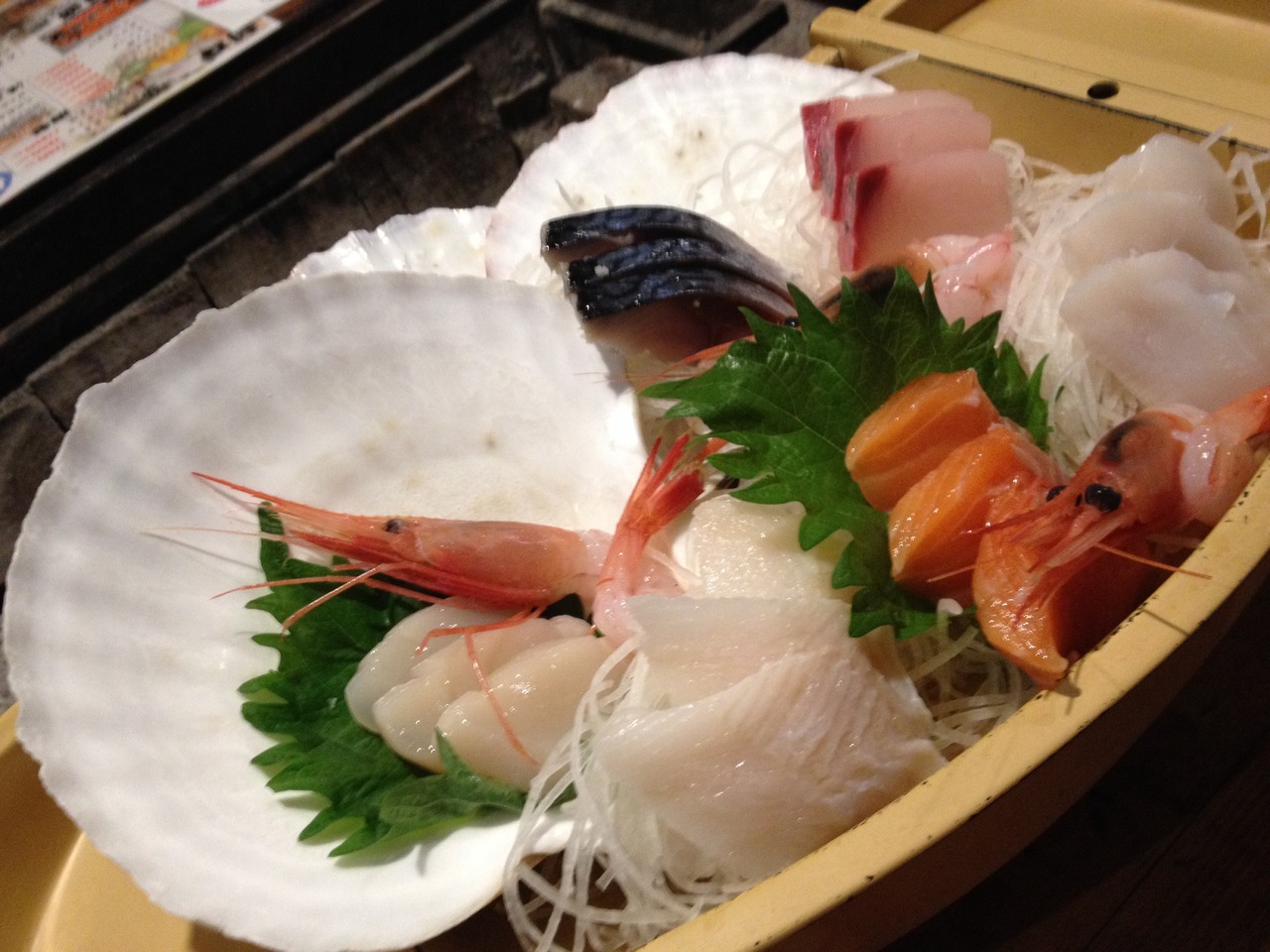 狸小路にある場末感漂う居酒屋です。価格設定は少し高めですが、ハッピーアワーや数量限定商品を上手く注文することでコストは抑えられます。この時は刺身7種盛りを1,100円で出していただきました。海老やサーモンはおいしかったですが、かんぱちの刺身はつかみ所がない味でした...笑
