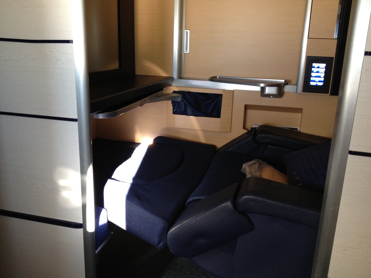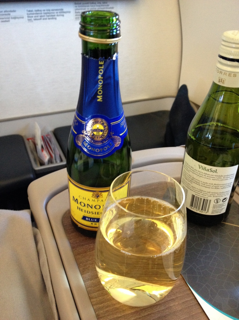 ビジネスクラスで予約をしていたところ、当日アップグレードを受けました。直前にチェックインしたこともあり、ラウンジは利用できませんでしたが、機内サービスは圧巻の一言でした。まず、スターターとクリュッグに一気に心惹かれ、その後に続いたワインの数々も素晴らしいものでした。始めの食事は洋食にしましたが、悩んでいた私を見た乗務員の方が気を利かせて、2食目に和食は如何ですか?と。さすがANA!という感じでした。