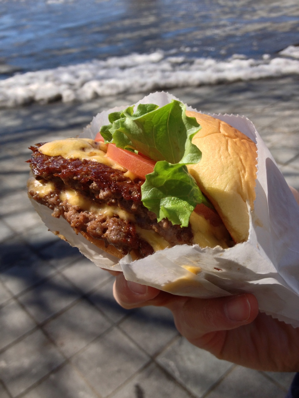 ニューヨークへ行くと必ず訪れるハンバーガーショップです。かなりカロリーが高いため、チーズ掛けのポテトフライとシェイク(○ーゲンダッツを飲んでいるような濃厚なもの)と一緒に食べるのはなかなか勇気が要ります。Madison Squareのお店は常に行列をなしていますが、こちらは休日の昼までもすぐに購入できるためお勧めです。