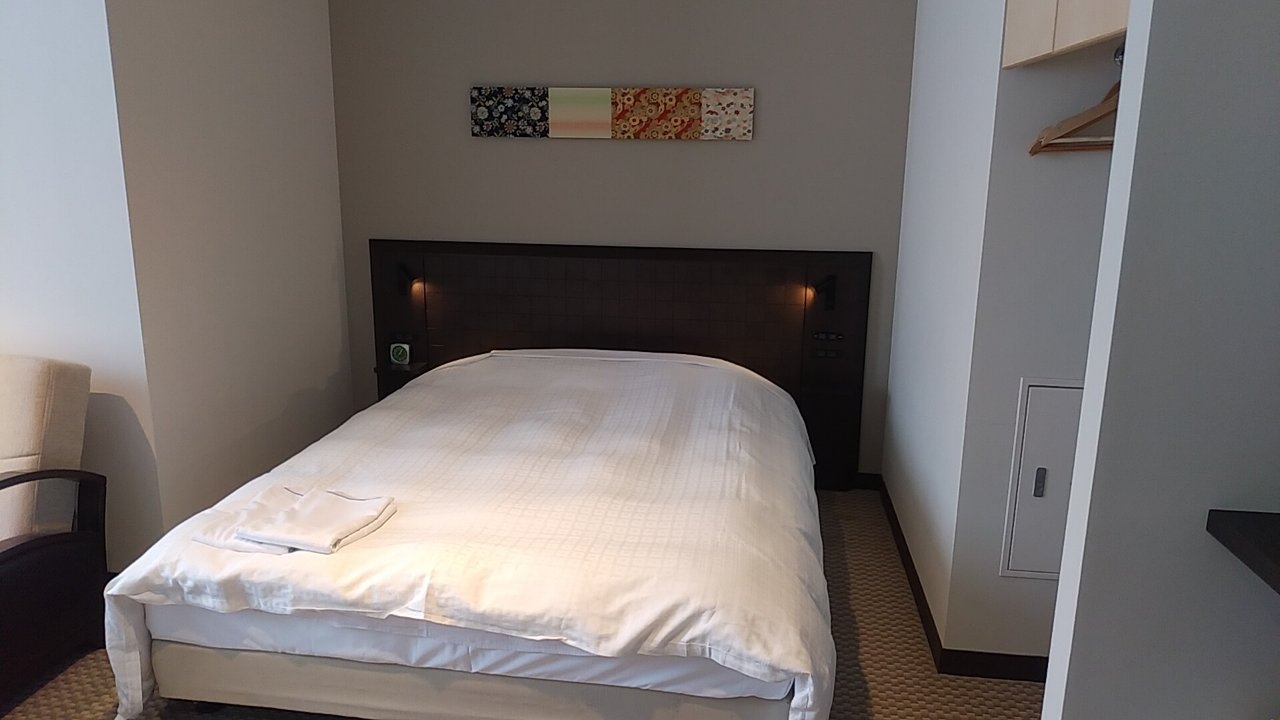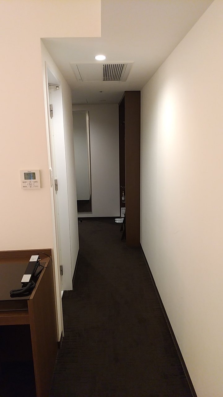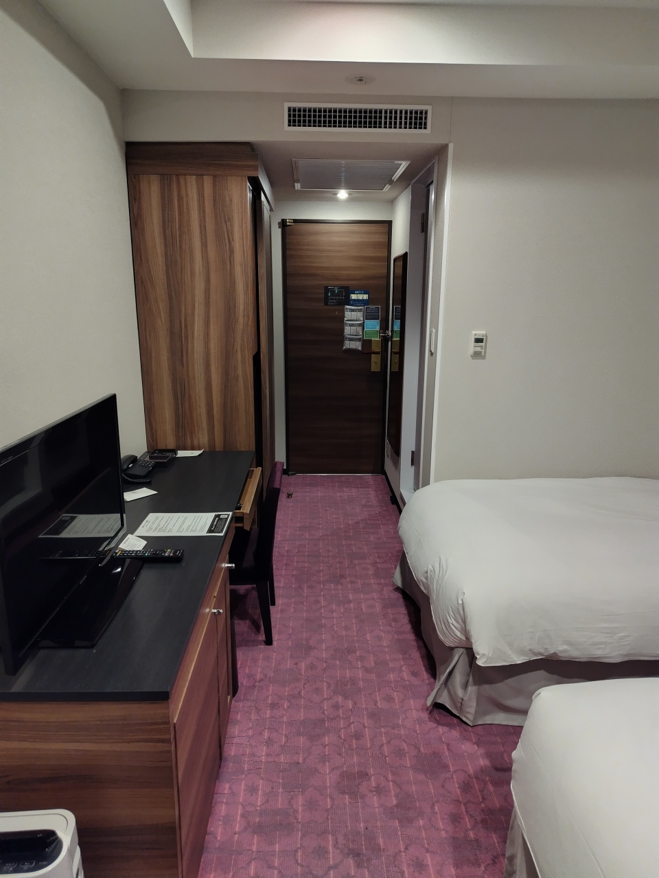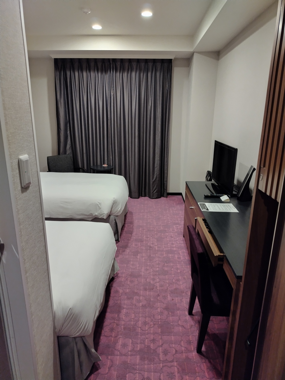 部屋は20平米とかなり広めのプレミアムダブルです。仕事するには広めの部屋の方がストレスがたまらないので、嬉しいですね。部屋のわりにデスクが狭いのが少し気になる所です。