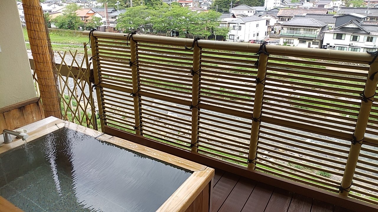 部屋は20畳くらいでしょうか。角部屋で非常に広かったです。2歳と5歳の子供達は走り回っていました。早速部屋の露天風呂に入りました。最初から沸いていましたが、熱すぎたので水で冷ましました。川の流れを見ながらゆっくりと入れます。