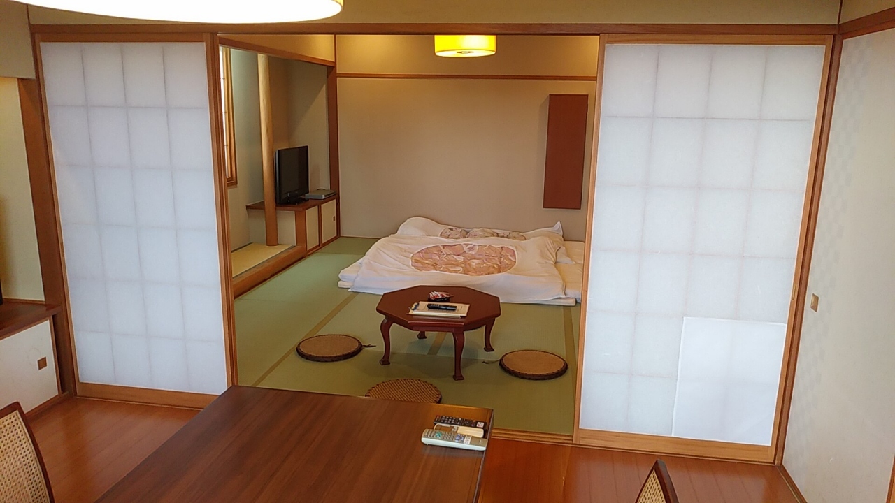 部屋は布団を敷く畳の間と板の間と二部屋ありました。子供が寝てからも板の間側のテレビをゆっくりと観ることができました。