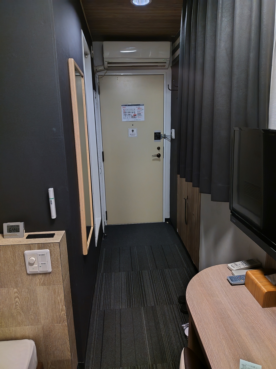 ミネラルウォーターがサービスで付いていて、加湿付き空気清浄機もあります。部屋も浴室も明るくてキレイです。デスクの広さもあり、ビジネス利用でも問題ありません。カーペットがピンクなのだけ気になりましたが。