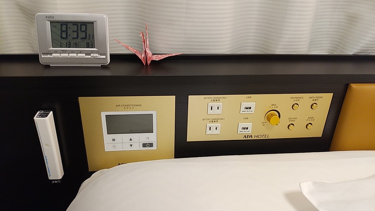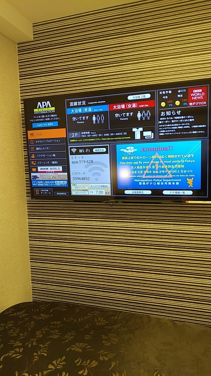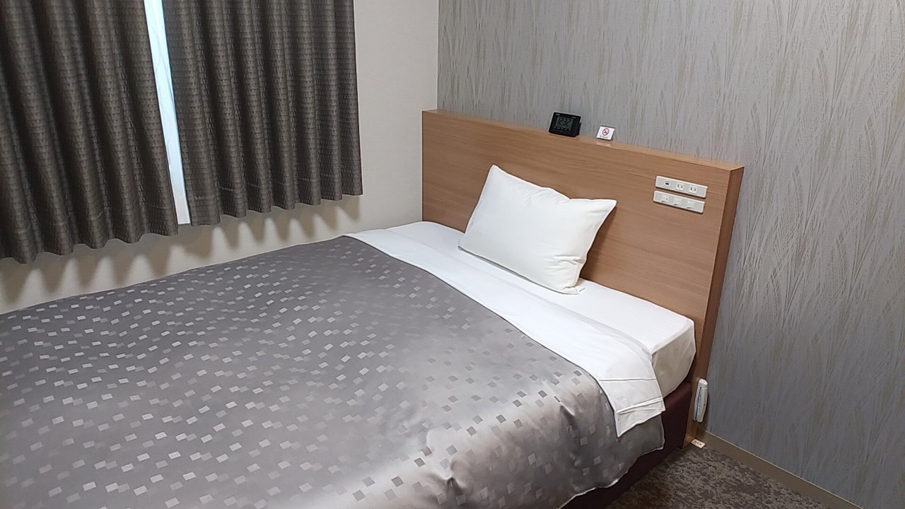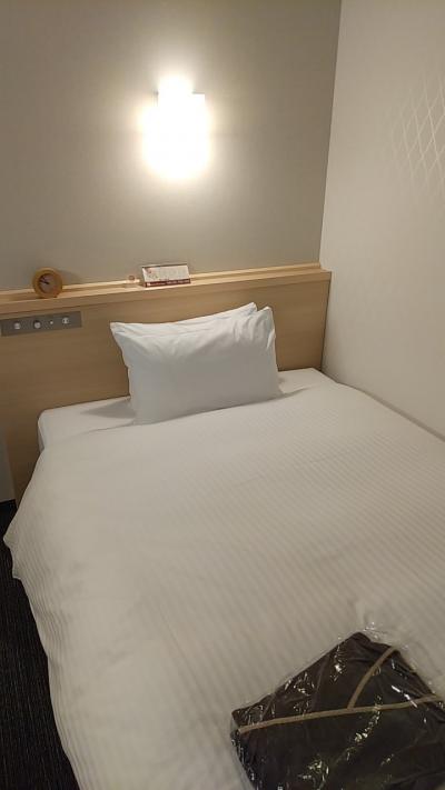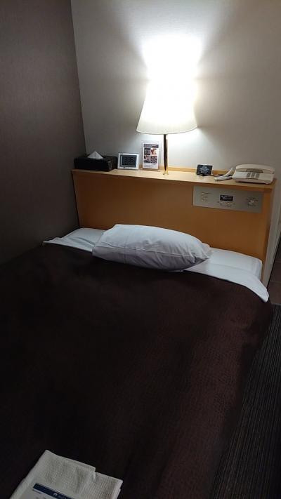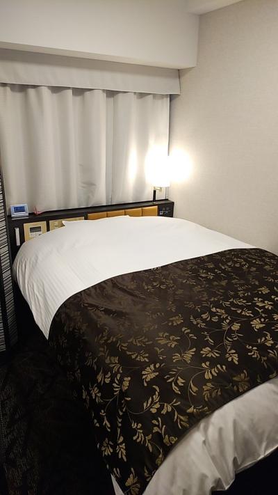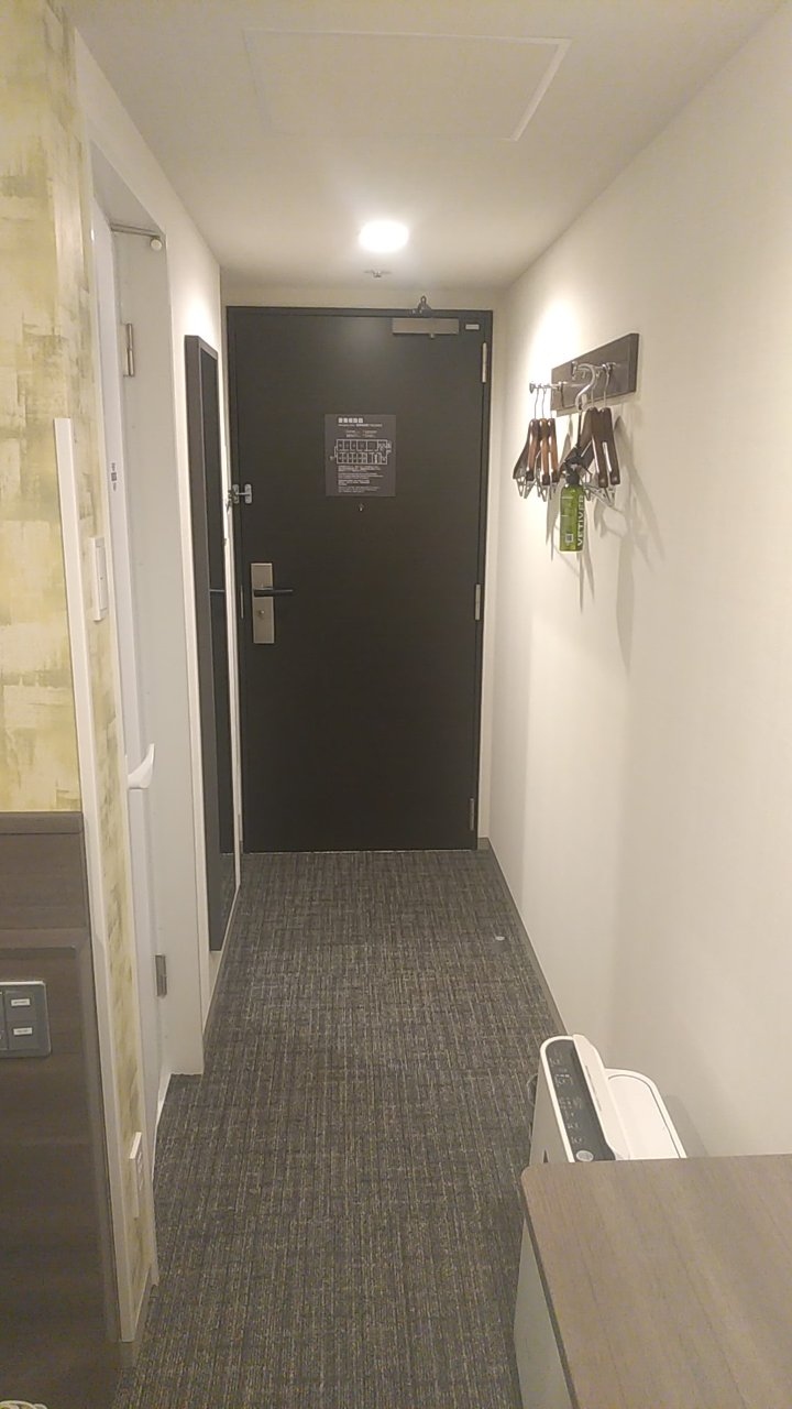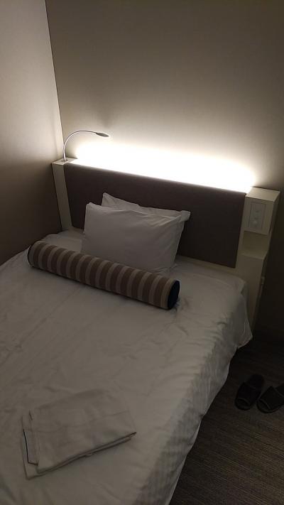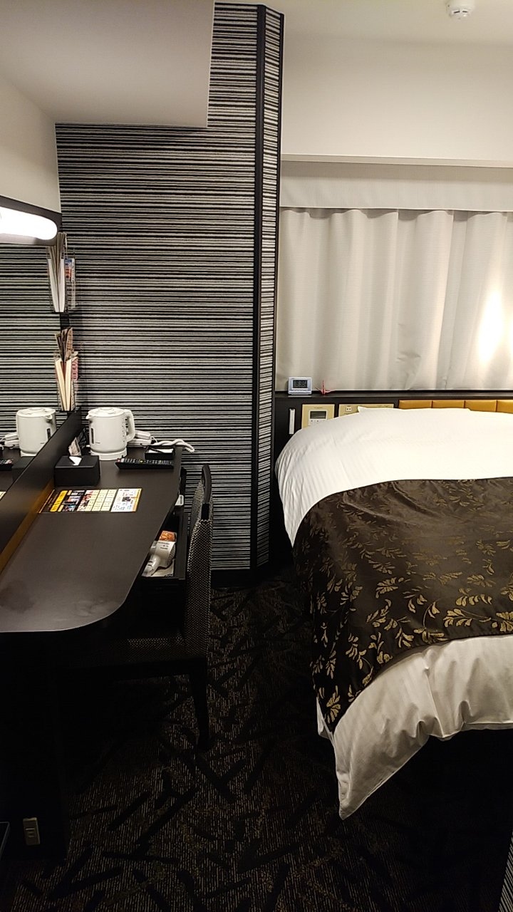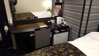部屋はシングルです。アパホテルなので部屋はかなりコンパクトです。その割に壁掛けのテレビはかなり大きいです。