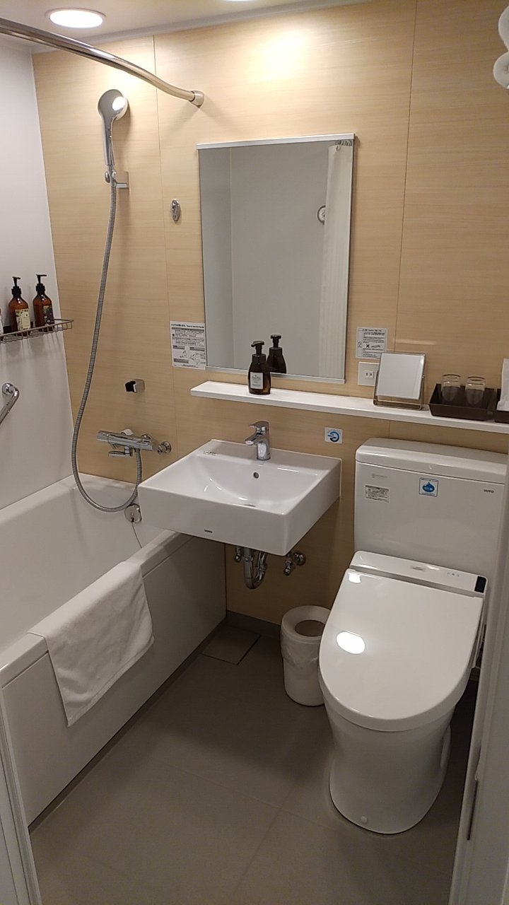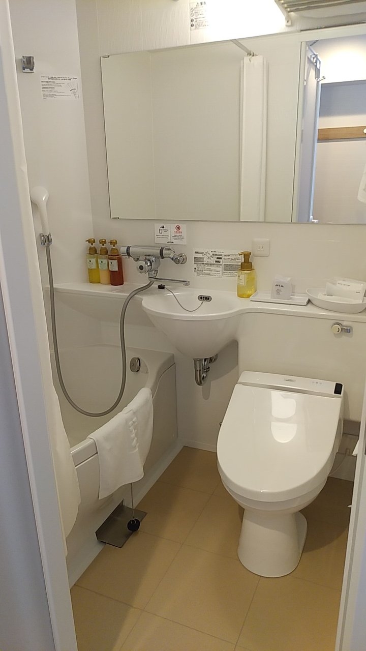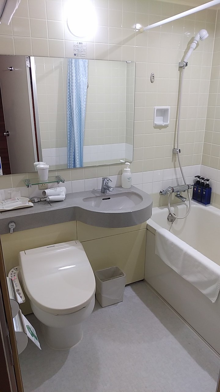 ユニットバスが少し小さくてシャワーしにくかったです。新しいホテルだとカーテンレールが湾曲していて浴室内を広めにとっておりますが、ここは真っ直ぐなレールです。