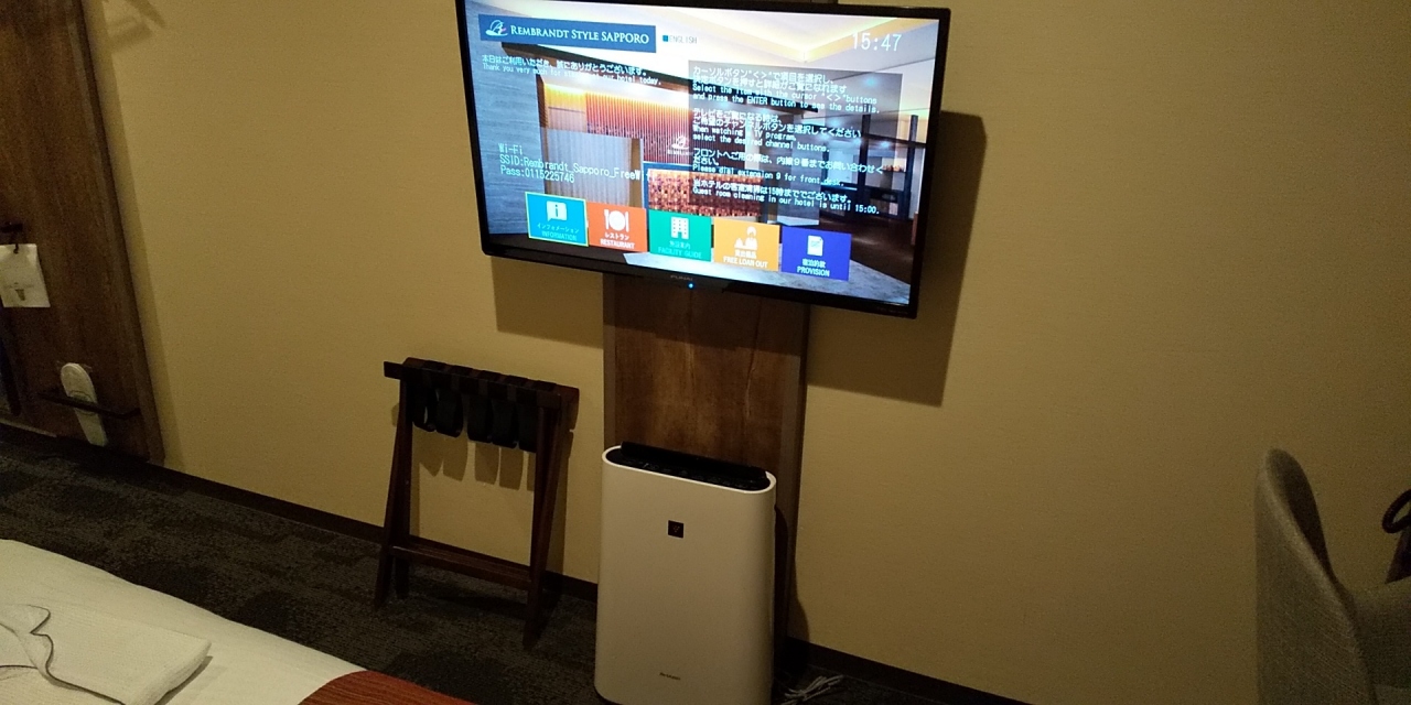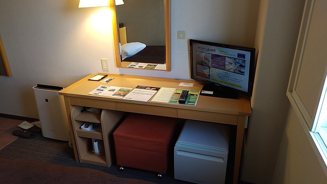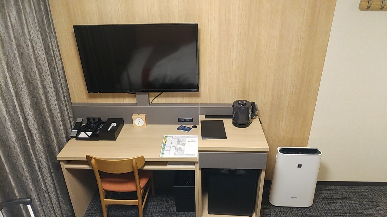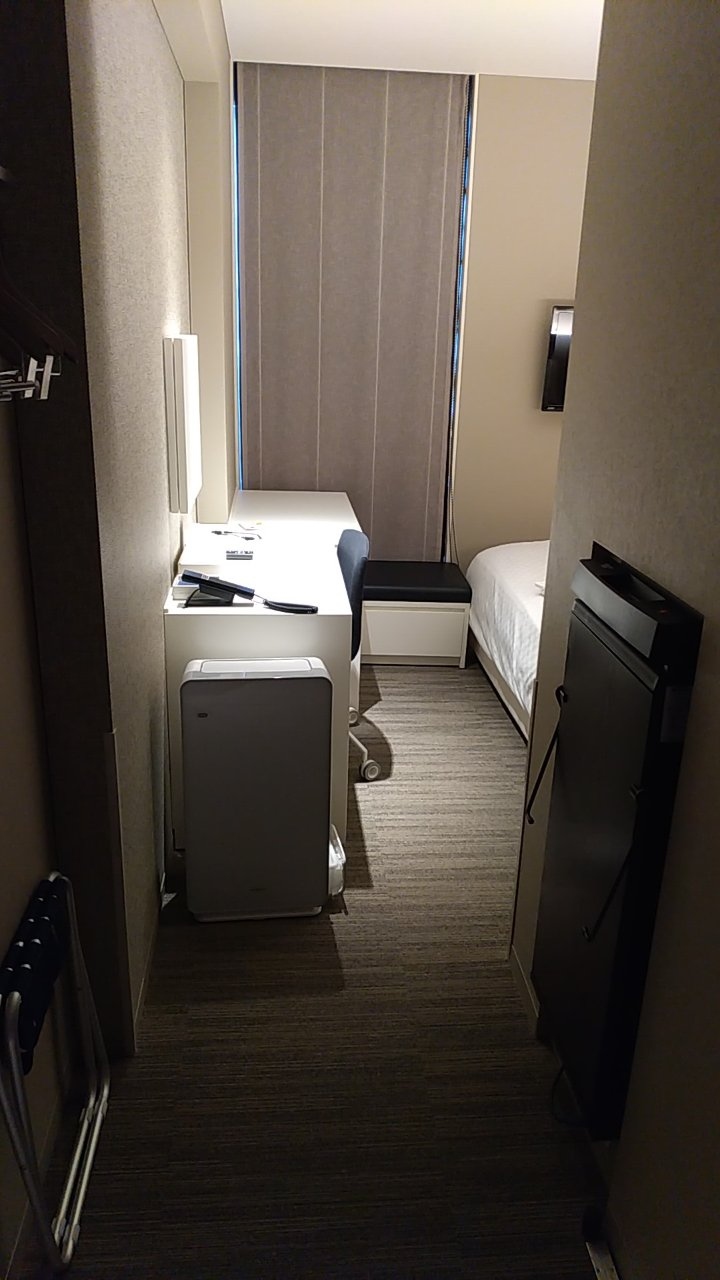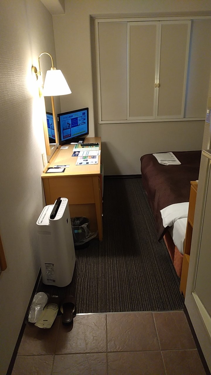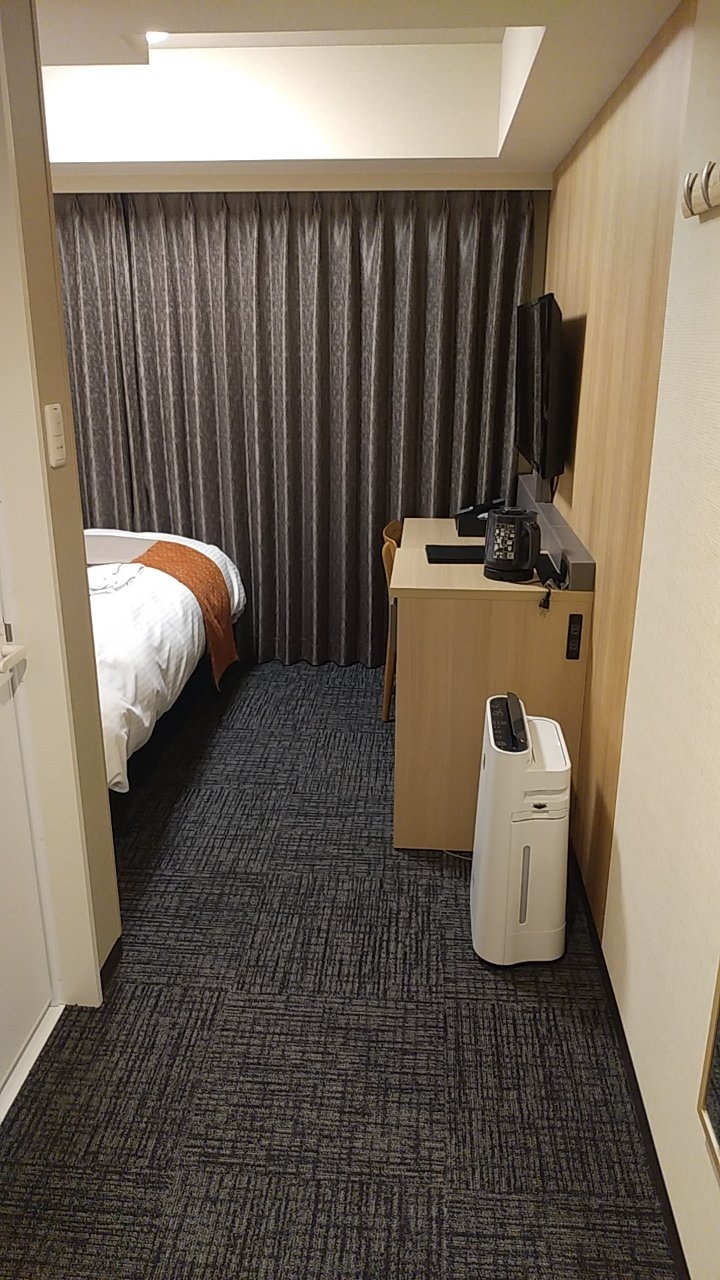 部屋は12平米のシングルルームです。ビジネスホテルのシングルとしてはごく普通だと思います。加湿機能付き空気清浄機がありました。乾燥する冬場にはありがたいです。
