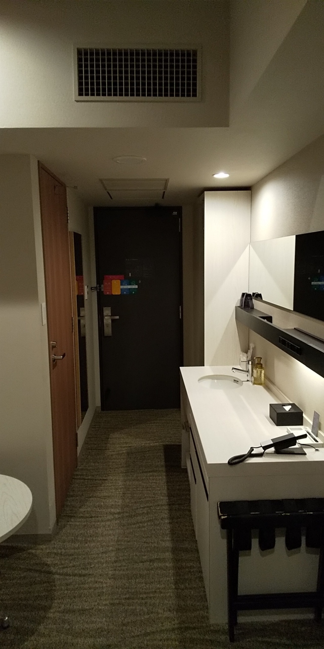 部屋は15平米のシングルルームです。壁掛けのテレビがデスクの前にあるので、仕事をしながら見るには近すぎます。それ以外は特に気になることはありませんでした。前年7月オープンなので新しくて設備はきれいです。