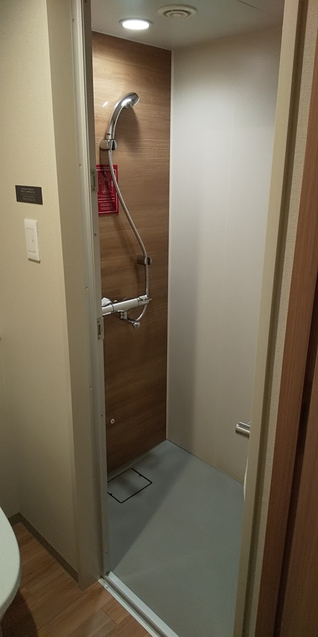 大浴場があるので部屋はシャワールームだけです。新型コロナが流行している時期でしたので念のため大浴場には行かず部屋のシャワーで済ませました。