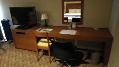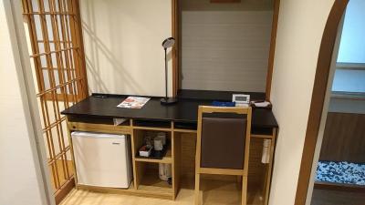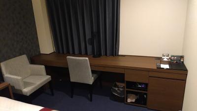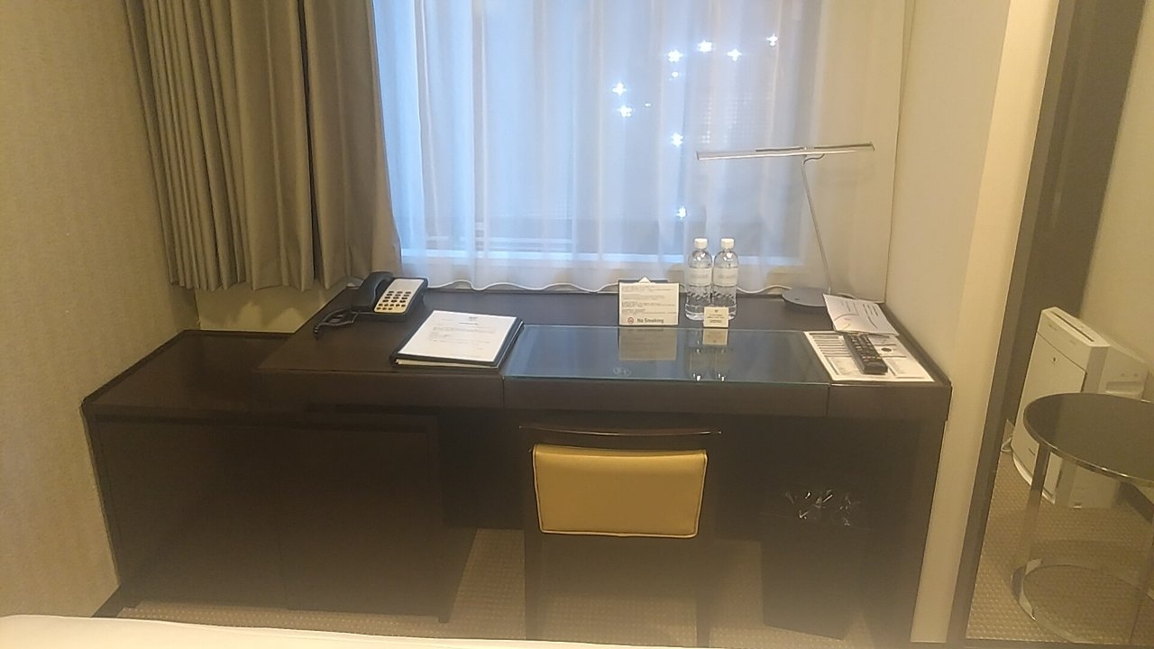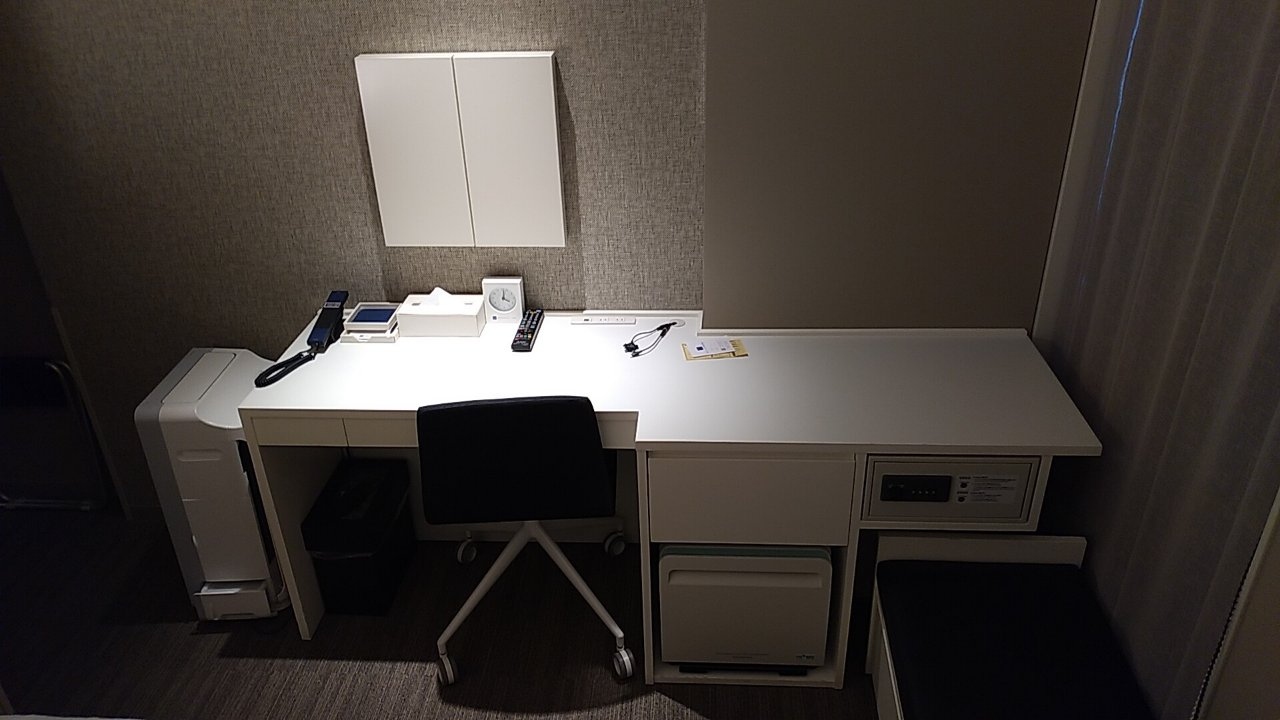 入って正面にあるデスクも2mくらいはあるでしょうか。とにかく広いです。ビジネス利用者はデスクで仕事をするので、広いと助かります。Wi-Fiも問題無く接続できました。