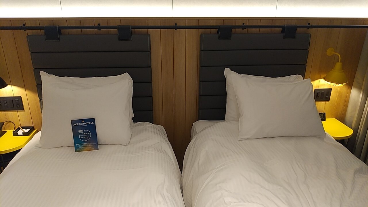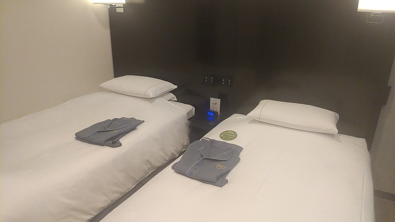 シングル予約でしたが、ホテル側の都合でスタンダードツインになっていました。部屋は広くなりましたがベッド幅が140cmから110cmと狭くなってしまったのが残念でした。